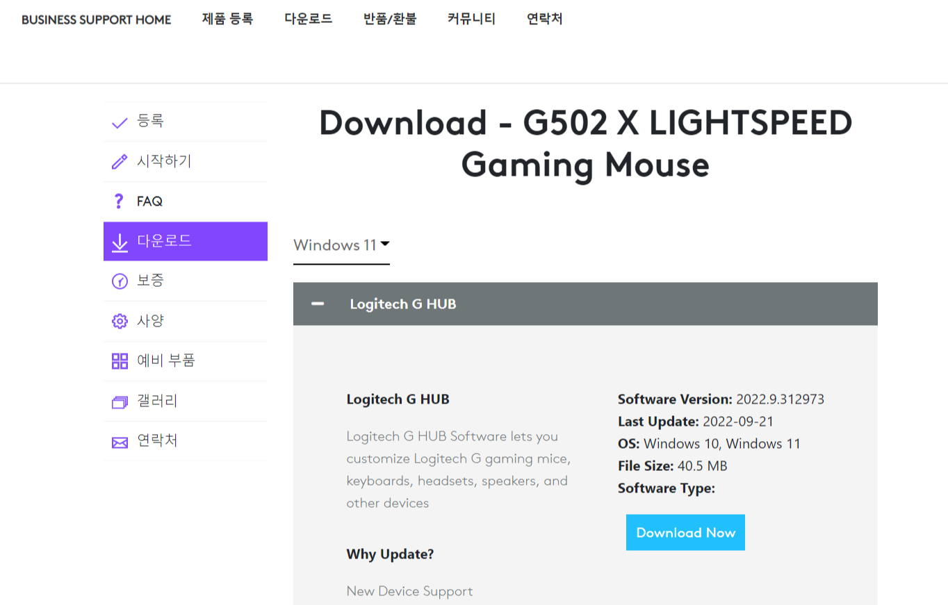 https://support.logi.com/hc/ko/articles/7639069820695-Download-G502-X-LIGHTSPEED-Gaming-Mouse